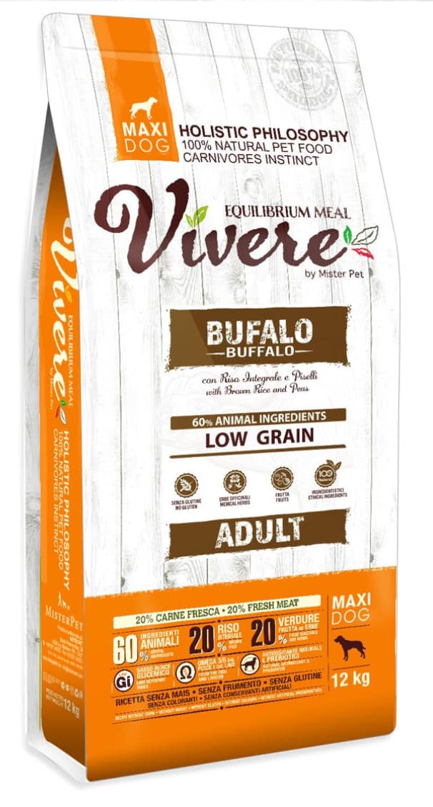 12 kg. Vivere Maxi Adult Buffalo täissööt suurt kasvu täiskasvanud koertele pühvliliha & riisiga
